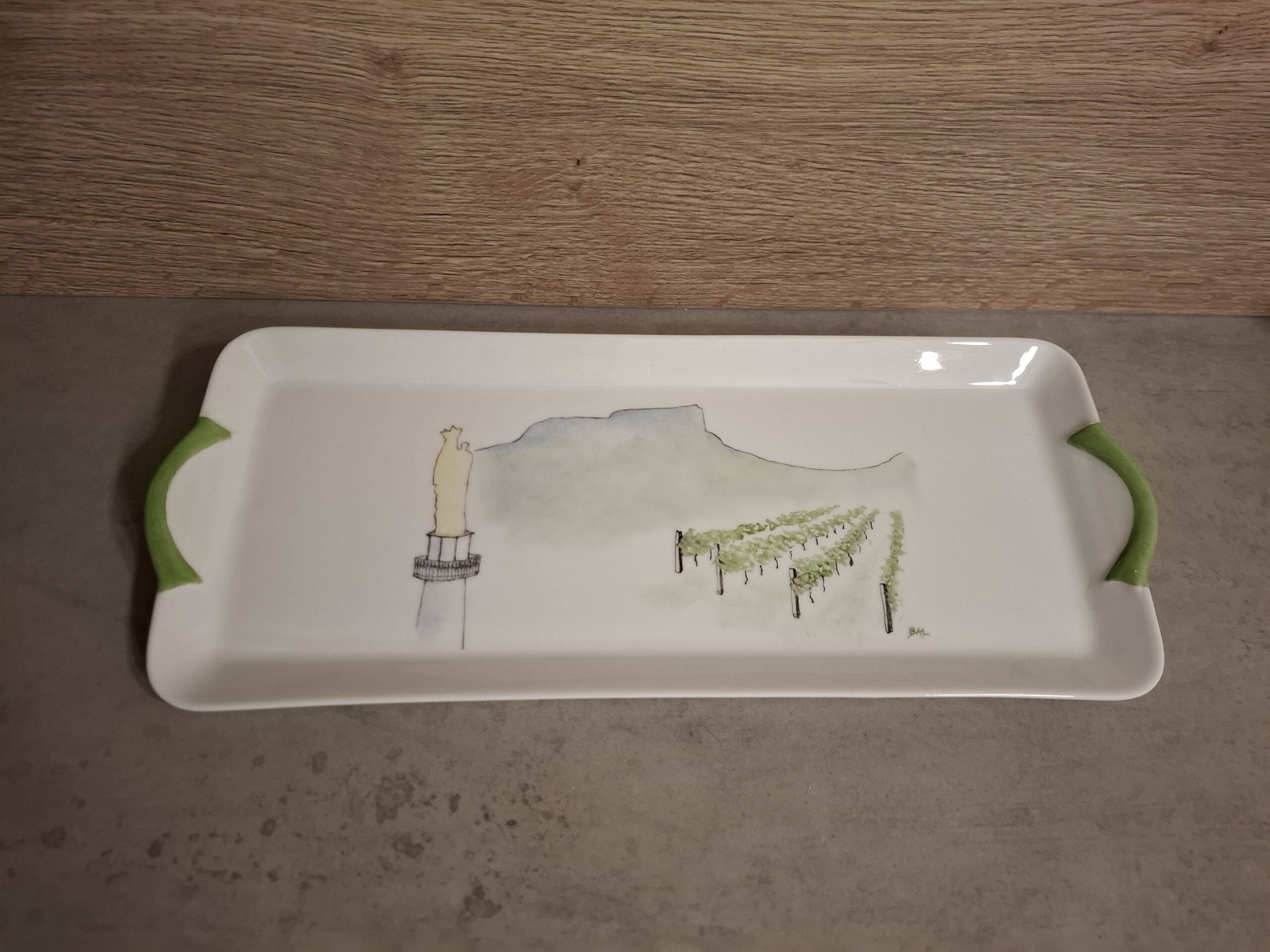 Plat à cake, motif Le Mont Cenis stylisé, cadeau Rotary